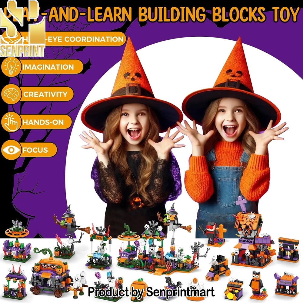 Product Description Of Halloween 31 Days Spooky Haunted House Ghosts Bats Pumpkins Building Block Toy Set Holiday Gift Box 2025