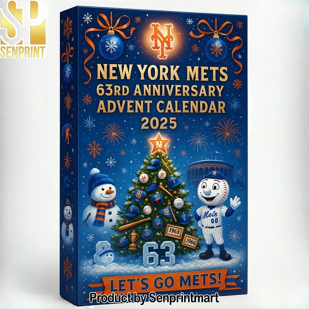 The ultimate holiday treat for any loyal New York Mets supporter has arrived, promising a December filled with daily surprises and unwavering team spirit. This meticulously designed New York Mets 63rd Anniversary Christmas Countdown Calendar 2025 stands as a testament to dedicated fandom, offering an unparalleled way to celebrate the festive season while commemorating over six decades of Mets history and passion. Visually striking, the calendar’s robust exterior immediately grabs attention, adorned in the iconic Mets blue and orange, accented with vibrant white detailing. It prominently features the classic interlocking ‘NY’ logo alongside playful, holiday-themed renditions of Mr. Met, perhaps donning a Santa hat or holding a miniature garland, all set against a backdrop that cleverly intertwines snowy Citi Field stadium elements with festive decorations. The “63rd Anniversary” emblem is subtly yet elegantly integrated, marking this calendar as a truly special, limited-edition collectible rather than just a generic holiday item.
